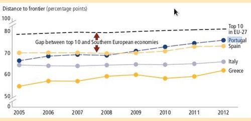 O relatório faz ainda uma análise aos últimos 7 anos, e a evolução desde então. O Banco Mundial coloca Portugal nos países que fizeram um esforço maior, dizendo que apenas Polónia, República Checa e Eslovénia conseguiram uma melhoria mais forte que Portugal dentro da UE. Este comportamento é também destacado quando se compara com o resto da periferia da Zona Euro: