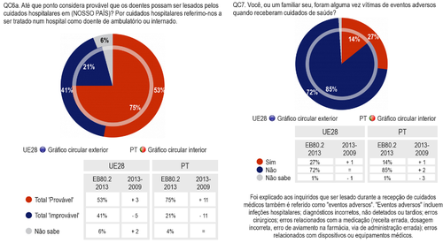 Quando perguntados se acham que no seu país é provável haver erros nos cuidados hospitalares, os portugueses são bem mais pessimistas que o resto dos europeus (75% contra 53%).
